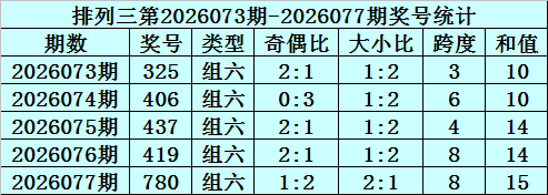 上期回来:陈设三第2026082期开奖号码为048。奖号类型为组六,奇偶比为0:3,大小比为1:2,跨度为8,和值为12。