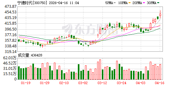 数据宝统计,甘休10:12,宁德期间成交额152.25亿元,超150亿元。最新股价上升5.07%,换手率0.80%。上一交夙昔该股全天成交额为161.22亿元。(数据宝)