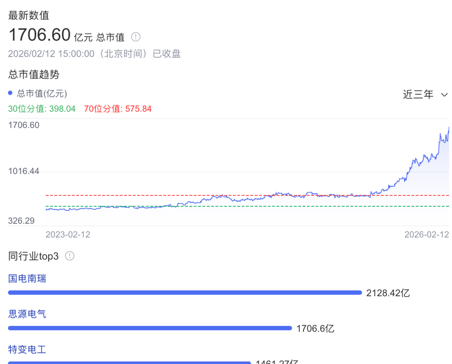 念念源电气总市值达1700亿元东谈主民币。