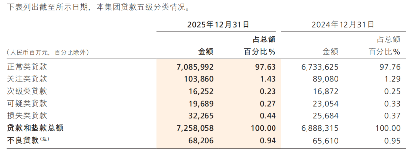 值得把稳的是,末端2025年,招商银行的房地产贷款为1.74万亿元,占比23.96%。其中,公司贷款3136.51亿元,个东说念主住房贷款为1.43万亿元,但公司房地产业的不良贷款金额为149.93亿元,较上年下落7.35亿元;个东说念主住房不良贷款金额为72.31亿元,较上年增长3.1亿元。